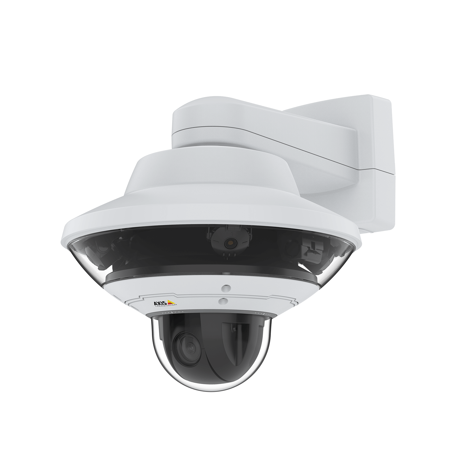 A AXIS Q6010-E é uma câmera dome panorâmica de 360° equipada com 4 sensores de 5 MP (20 MP no total), ideal para monitoramento urbano, centros comerciais e áreas abertas. Compatível com as câmeras PTZ AXIS Q60-E, combina visão geral completa e foco em detalhes com apenas um clique.