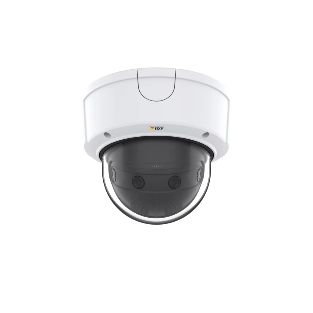 A câmera de rede dome AXIS P3807-PVE oferece uma cobertura panorâmica de 180°, combinando imagens de quatro sensores de maneira precisa e sem distorções. Dessa forma, ela proporciona uma visão detalhada de grandes áreas, com resolução de 8,3 MP a 30 fps. Portanto, você obtém uma visão clara e confiável em ambientes amplos, garantindo vigilância eficaz em qualquer situação.