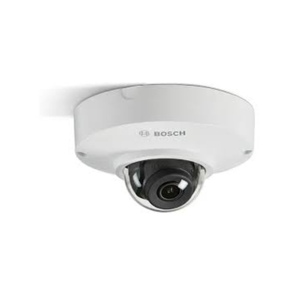 A Câmera de Rede Dome Bosch NDV-3502-F02 entrega imagens em 1080p com HDR de 120 dB, vídeo inteligente e microfone embutido, ideal para ambientes internos.
