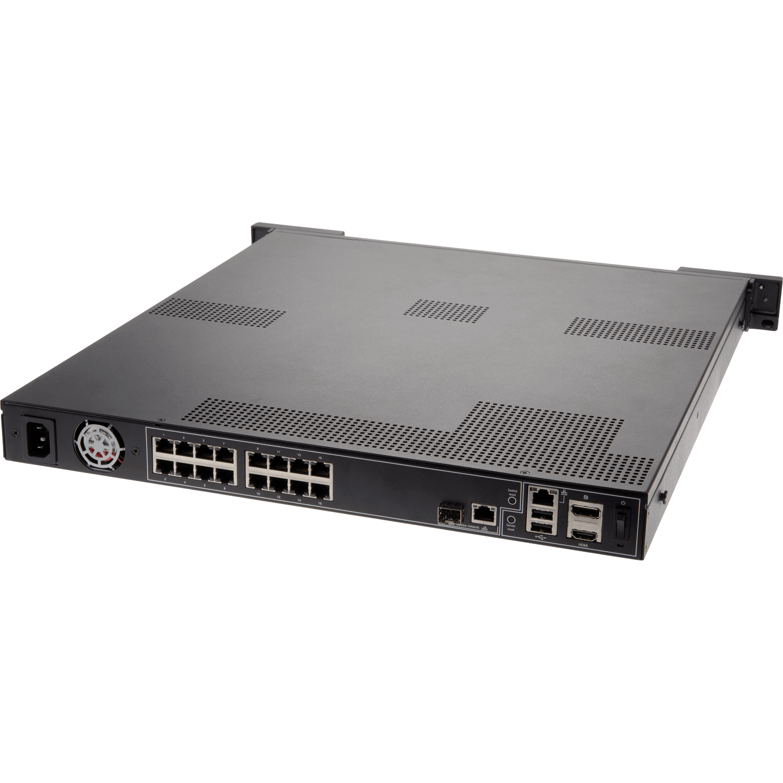 PoE: 16 portas (IEEE 802.3at Class 4) com 260W total
